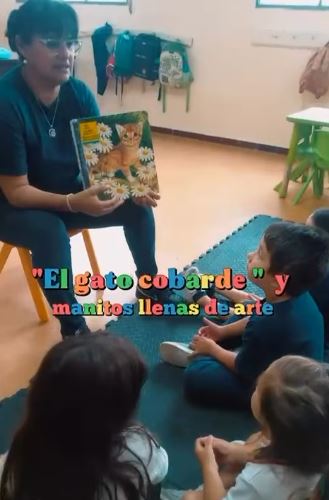 “Hoy escuchamos el cuento”El gato valiente”. Entre palabras ,miradas curiosas y mucha imaginación ,los niños se sumergieron en la historia